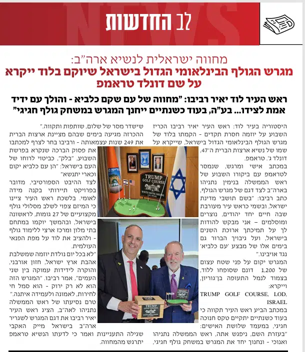 מגרש הגולף בלוד יקרא על שם דונלד טראמפ